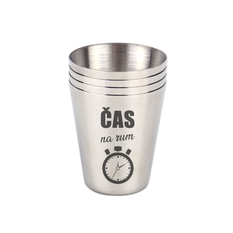 Sada čtyř cestovních nerezových panáků o objemu 25, 75, nebo 150 ml s vygravírovaným motivem viz náhledový obrázek. Panáky jsou bezpečně uloženy v černém koženkovém pouzdru.