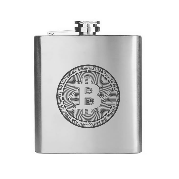 Placatka „Bitcoin“ je elegantní kapesní placatka v kovovém vzhledu s detailním kruhovým motivem Bitcoinu na čelní straně. Díky šroubovacímu uzávěru se snadno otevírá i zavírá a její plochý tvar je praktický do kapsy, batohu nebo tašky. Design je jasně rozpoznatelný a udělá dojem, aniž by působil přehnaně.