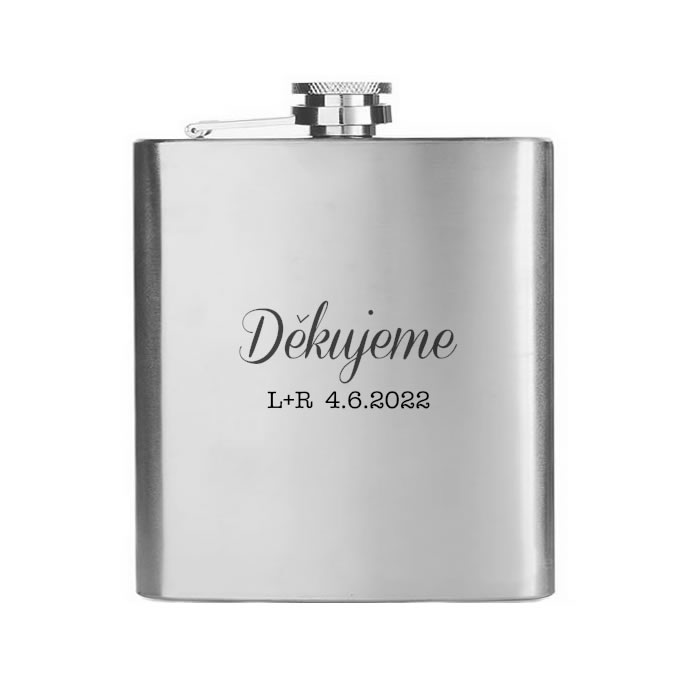 Nerezová placatka, na kterou vám pomocí laserové technologie s precizní přesností vygravírujeme vaše iniciály a datum svatby do zde vyobrazeného motivu. Velikost placatky si můžete vybrat z několika objemových variant 150 / 180 / 210 / 240 nebo 270 ml.