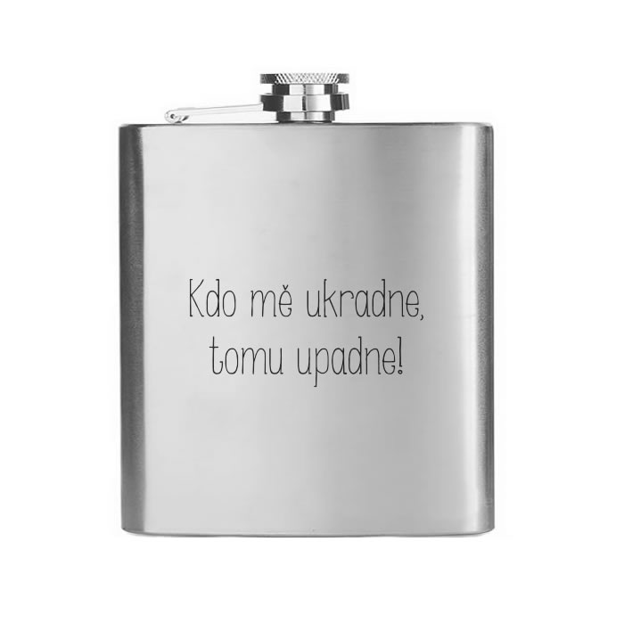 Nerezová placatka na alkohol, na které je vygravírovaný motiv viz obrázek. Velikost placatky si můžete vybrat z několika objemových variant.