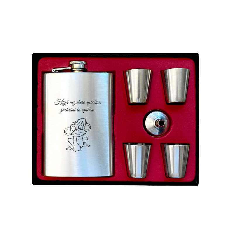 Nerezová placatka na alkohol, na kterou vám pomocí laserové technologie s precizní přesností vygravírujeme zde vyobrazený motiv. Velikost placatky si můžete vybrat z několika objemových variant 150 / 180 / 210 / 240 nebo 270 ml.