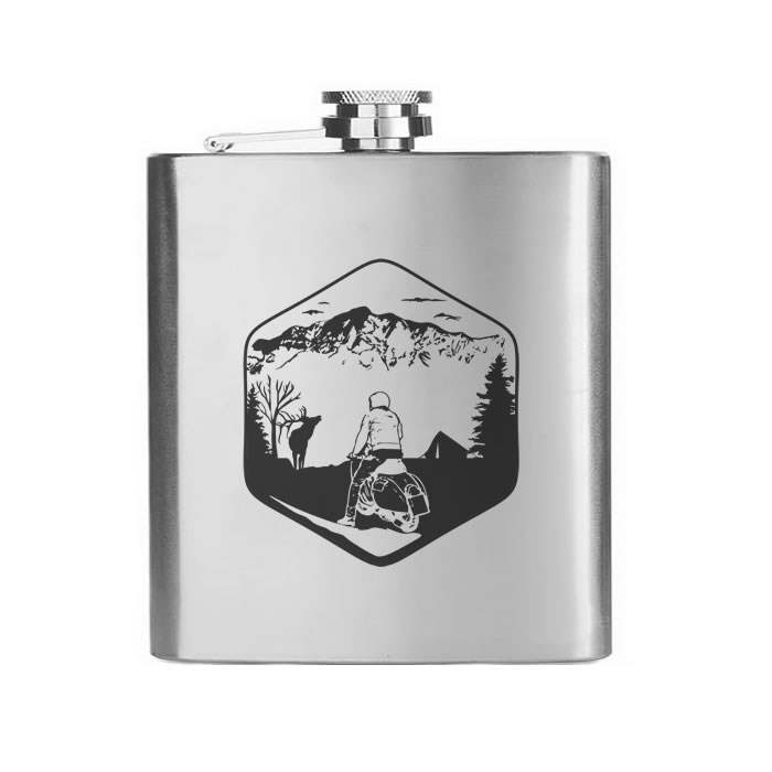 Nerezová placatka na alkohol, na které je vygravírovaný motiv viz obrázek. Velikost placatky si můžete vybrat z variant 180, 210, 240, nebo 270 ml.