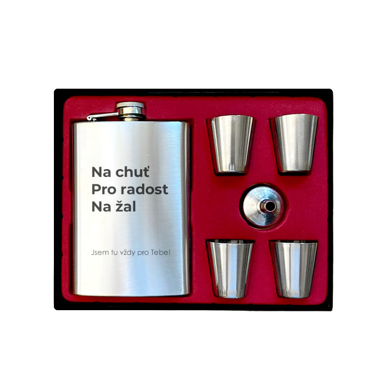 Nerezová placatka na alkohol, na které je vygravírovaný motiv viz obrázek. Velikost placatky si můžete vybrat z několika objemových variant.