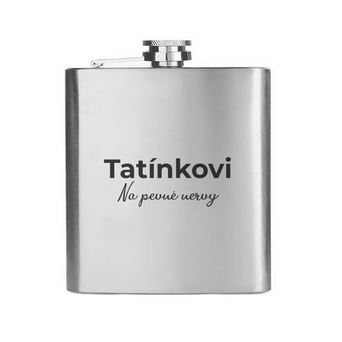 Nerezová placatka na alkohol, na které je vygravírovaný motiv viz obrázek. Velikost placatky si můžete vybrat z variant 180, 210, 240, nebo 270 ml.