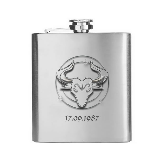 Nerezová placatka na alkohol, na které je vygravírovaný motiv viz obrázek. Velikost placatky si můžete vybrat z variant 180, 210, 240, nebo 270 ml.