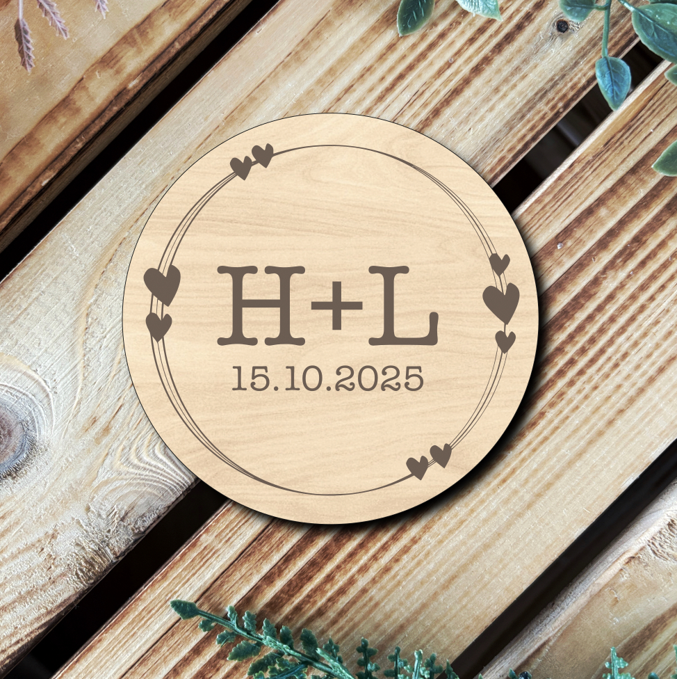 Elegantní kulatá magnetka s personalizovaným gravírováním je ideálním dárkem pro vaše svatební hosty. Je vyrobena z přírodního dřeva se zachováním krásné kresby, která podtrhne rustikální a moderní svatební styl.