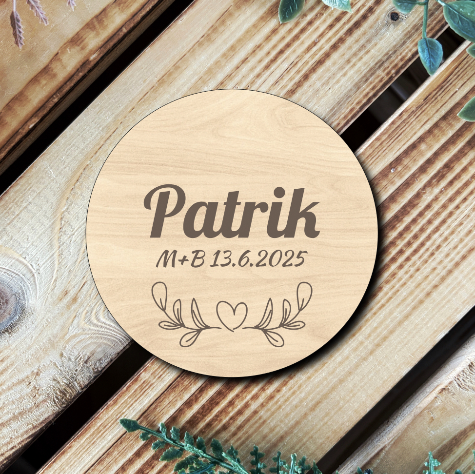 Elegantní kulatá magnetka s personalizovaným gravírováním je ideálním dárkem pro vaše svatební hosty. Je vyrobena z přírodního dřeva se zachováním krásné kresby, která podtrhne rustikální a moderní svatební styl.