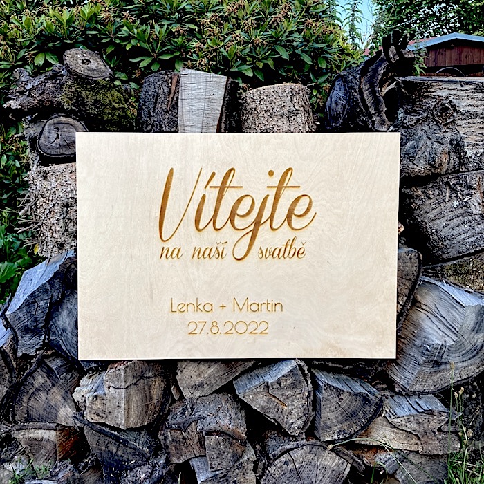 Stylová dřevěná uvítací tabule s jmény novomanželů a datem svatby, která skvěle doplní přírodní svatbu. Uvítací tabuli můžete kdekoliv jen tak opřít, nebo ji usadit například na malířský stojan a nebo ji zavěsit. Užasně vypadá v kombinaci se zeleným břečťanem nebo eukalyptem.