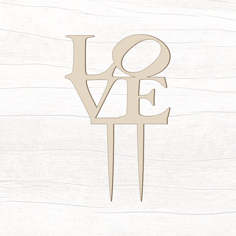 Ozdobný dřevěný zápich do dortu s nápisem LOVE, díky kterému i z obyčejného dortu vytvoříte dort jedinečný, který bude každý obdivovat.