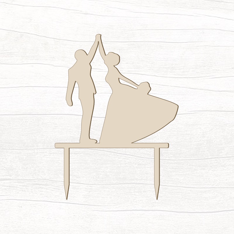 Ozdobný dřevěný zápich do dortu s motivem novomanželů, díky kterému i z obyčejného dortu vytvoříte dort jedinečný, který bude každý obdivovat.