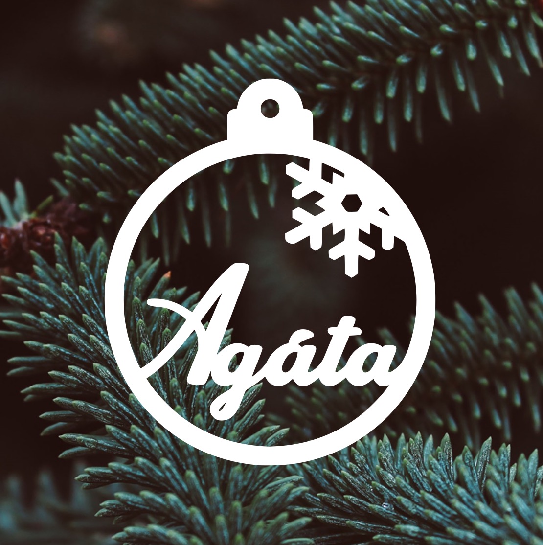 - Bílá vánoční ozdoba se jménem