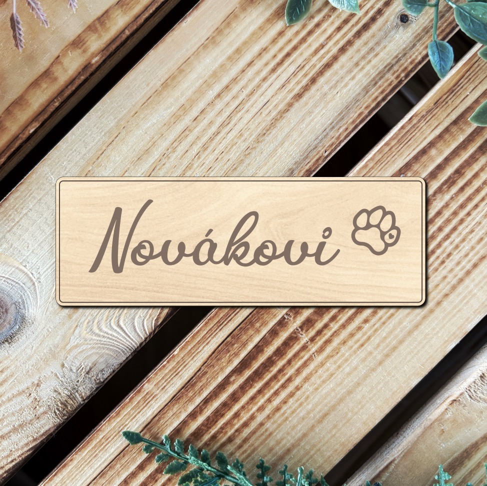 - Dřevěná jmenovka na dveře s tlapkou