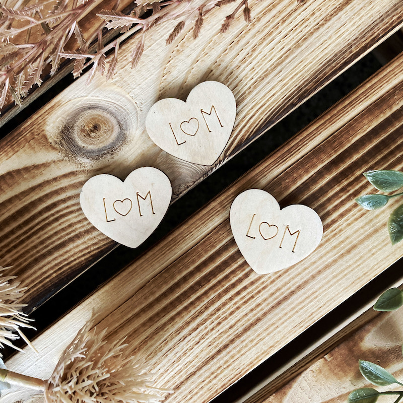 Jemný detail, který udělá velký dojem. Dřevěná srdíčka s iniciály dodají vašemu dni osobní kouzlo a vytvoří hezkou památku pro vás i vaše hosty. Oceníte přírodní vzhled, čistý design a možnost personalizace.