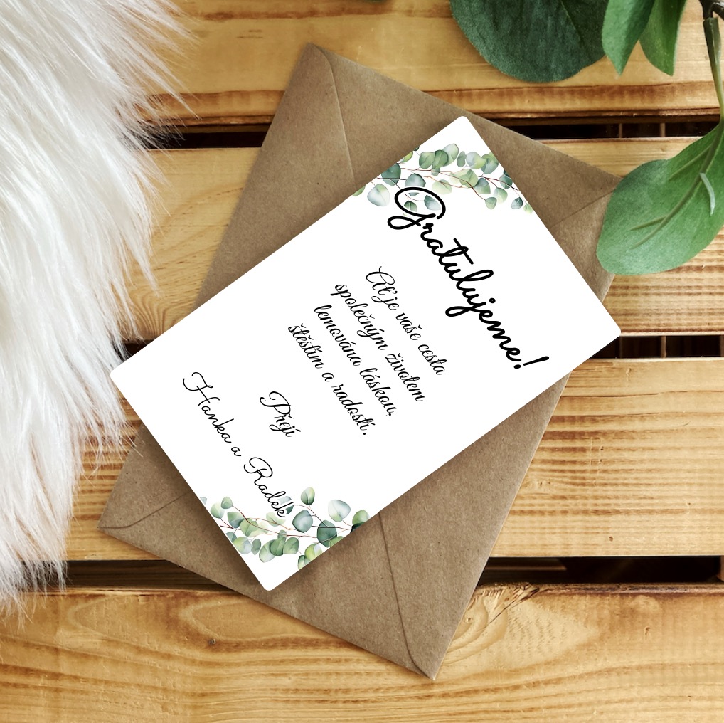 Dřevěné svatební přání jsou velmi oblíbenou alternativou ke klasickým papírovým blahopřáním. Darujte peníze originálněji a stylově. Společně s kraftovou dárkovou obálkou jsou naše přání naprosto ideálním párem, který údělá velkou radost každému novomanželi!