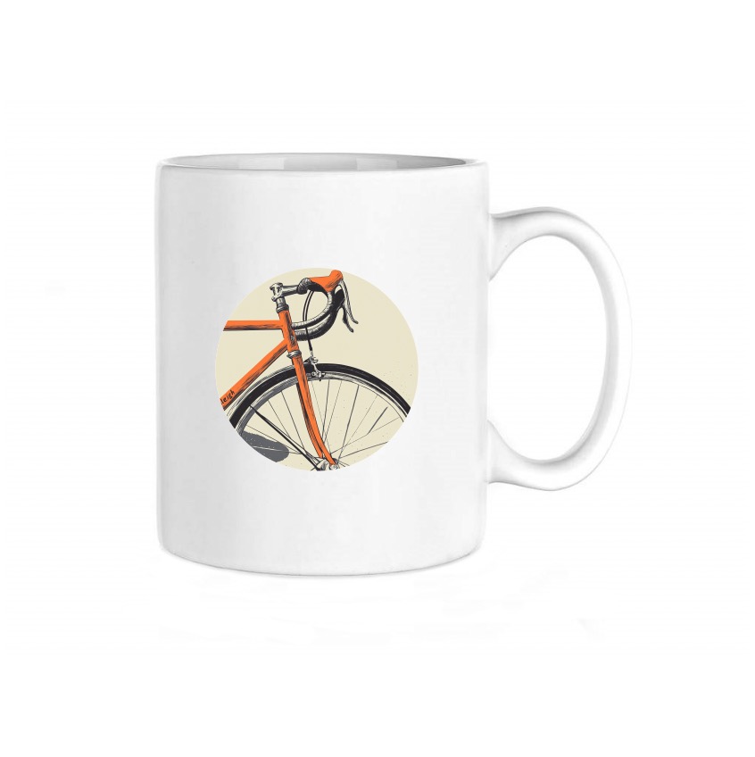 Motiv zobrazuje detailní ilustraci silničního kola, které je dominantně znázorněno v elegantní kombinaci černé a oranžové barvy. Oranžový rám kola přidává jasný a energický prvek, zatímco čisté linie a precizní detaily vytvářejí dojem pohybu a dynamiky.