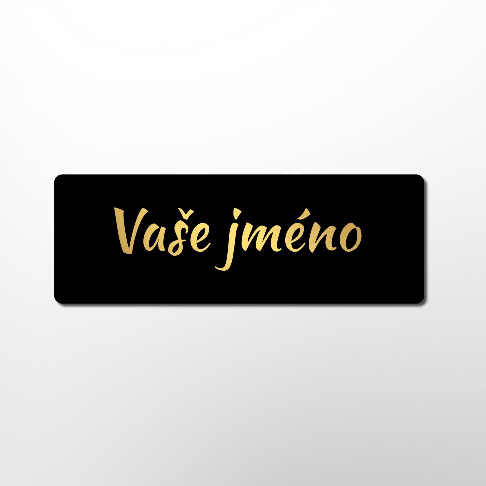 Jmenovka na dveře z černého plexiskla je dokonalým spojením vkusu a moderní elegance. Černý povrch dodává jmenovce sofistikovaný vzhled a zlatý text zajišťuje výbornou čitelnost a jedinečný design. Plexisklo je lehký, odolný materiál, který si zachovává svůj vzhled i při dlouhodobém použití. Tato jmenovka je ideální pro interiéry i exteriéry, kde chcete vyniknout jemnou, ale výraznou elegancí. Perfektní volba pro vchody bytů, domů nebo firem, s možností přizpůsobení textu přesně podle vašich představ.