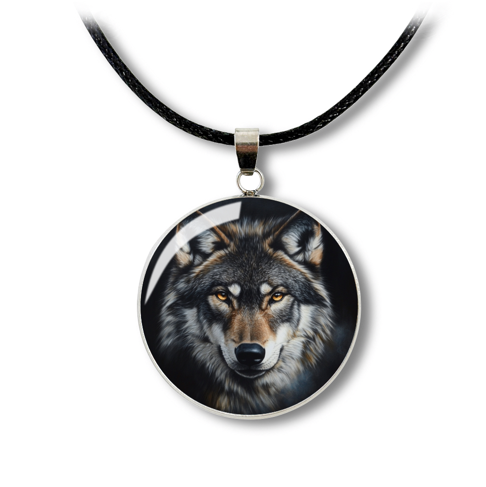 Tento okouzlující náhrdelník s motivem majestátního vlka je dokonalým kouskem pro všechny, kdo obdivují sílu a krásu přírody. Vlka, zachyceného v realistickém stylu, obklopují nádherné barvy. Jeho srst ve odstínech šedé a hnědé se hladce mísí s tmavým pozadím, zatímco jeho pronikavé, zlatožluté oči přitahují pohled a vyzařují tajemství a sílu.