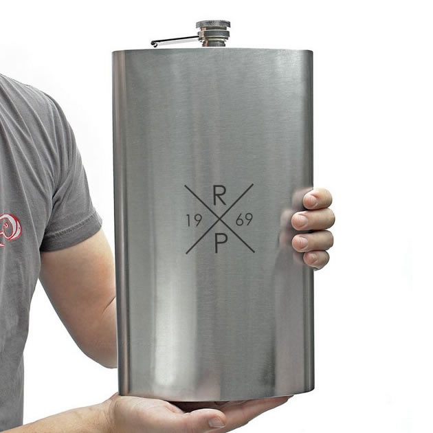 Extra velká placatka na alkohol o objemu 1,9 l je vyrobena z nerezové oceli a je na ní vygravírovaný motiv viz obrázek.