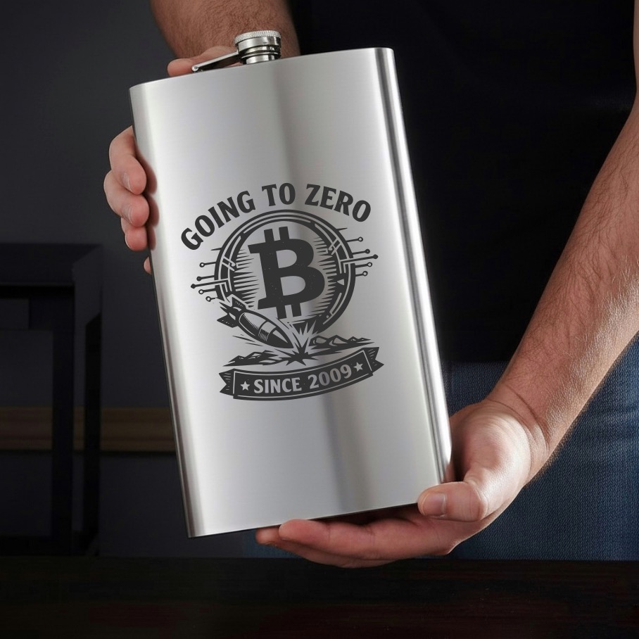 Stylová placatka s výrazným motivem Bitcoinu „Going to zero“ a nápisem „Since 2009“ dodá šmrnc každému výletu i dárku. Oceníte pevný kovový vzhled, kompaktní velikost do kapsy a originální potisk, který zaujme na první pohled. Skvělé pro fanoušky krypta i pro ty, kdo mají rádi ironický humor.