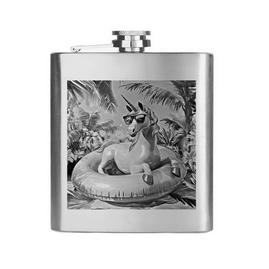 Oživte své chvíle s naší stylovou placatkou s vtipným designem "Jednorožec na duhovém člunu"! Tento unikátní kousek je ideální pro všechny milovníky zábavy a originálních doplňků. Díky sladění funky motivu s praktickou funkcí se skvěle hodí na festivaly, večírky nebo do přírody.