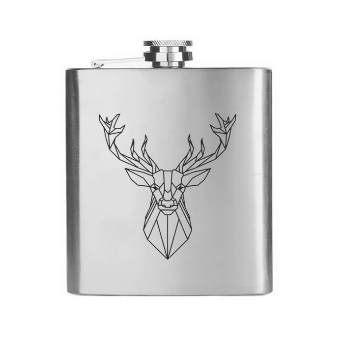 Nerezová placatka na alkohol, na které je vygravírovaný motiv viz obrázek. Objem placatky 210 ml.