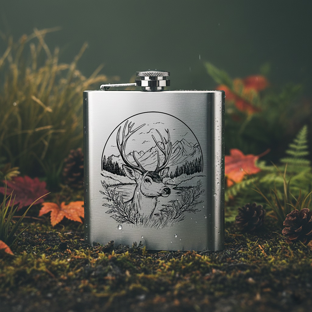 Nerezová placatka s jelenem – stylový doplněk pro každou příležitost