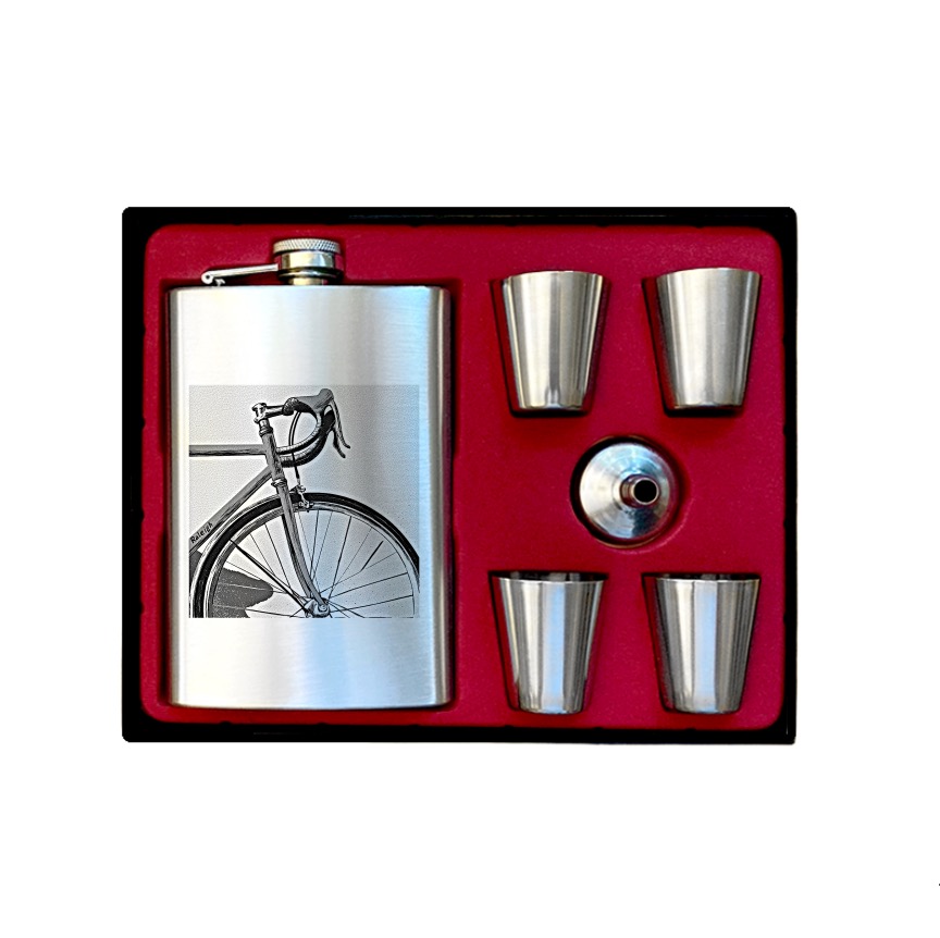 Každý detail, od řídítek až po kolo, je uměleckým vyjádřením vášně pro cyklistiku. Placatka je ideálním společníkem na vaše cyklistické výlety, závody nebo víkendové dobrodružství. Vyrazte na silnici a užijte si svůj oblíbený nápoj stylově!