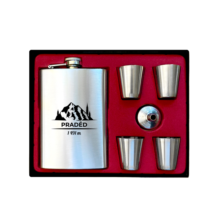 Placatka je vyrobena z kvalitního nerezu a zdobená elegantním designem připomínajícím nejvyšší vrchol Moravy. Perfektní pro uchování oblíbeného nápoje a zároveň připomínka vašeho dobrodružství na Pradědu.