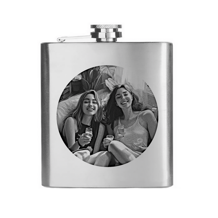 Nerezová placatka, na kterou vám pomocí laserové technologie vygravírujeme ve vysokém rozlišení vaší fotograií s kruhovým výřezem. Velikost placatky si můžete vybrat z několika objemových variant 150 / 210 / 240 nebo 270 ml.