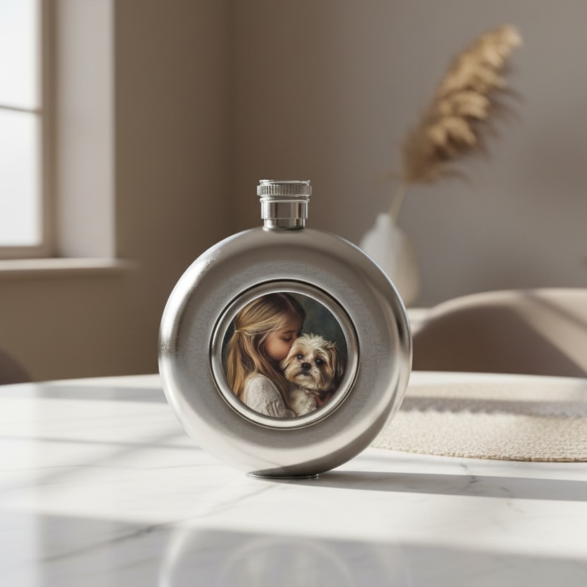 Váš oblíbený nápoj a nejoblíbenější fotka – to vše v jedinečném balení! Tato elegantní placatka s možností personalizace vaší vlastní fotografií je ideální parťák na výlety, oslavy nebo pro každodenní použití. Perfektní jako originální dárek nebo individuální módní doplněk. Lehká, praktická a stylová – přesně podle vašich představ.
