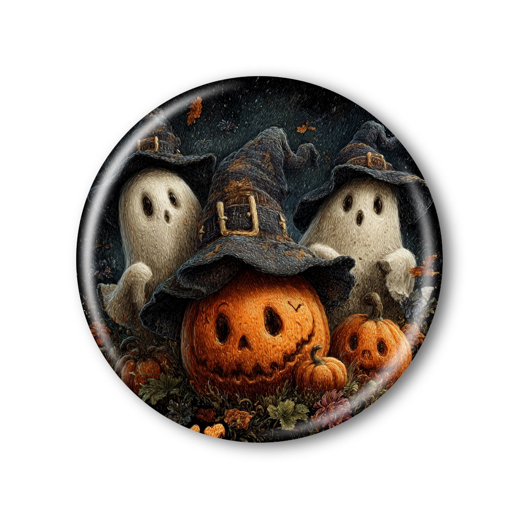 Kvalitní připínací placka nebo magnetka s originálním halloweenským motivem. Na výběr ze tří velikostí: 32, 44 a 58 mm. celý popis