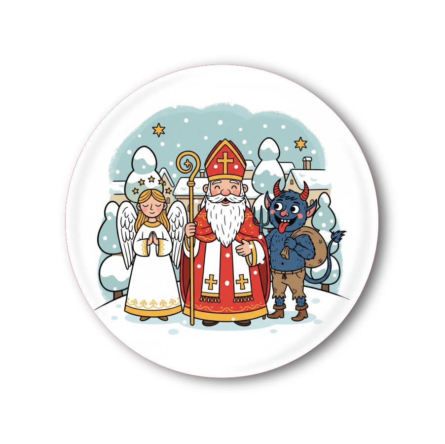 Veselá připínací placka nebo magnetka s mikulášským motivem potěší děti i dospělé! Placky i magnetky jsou vyráběny z kvalitních materiálů, díky čemuž jsou odolné a dlouho vydrží krásné. Nabízíme je v oblíbených velikostech: 44 a 58 mm – stačí si vybrat tu pravou.