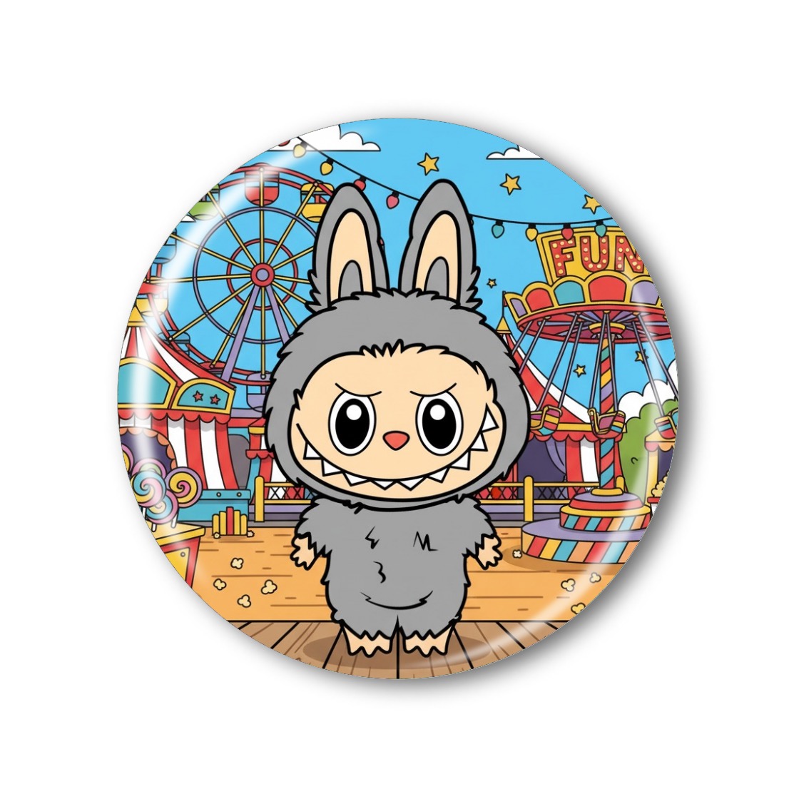 Veselá placka nebo magnetka s postavou Labubu vyzdobí batoh, tričko, nástěnku, lednici či jakýkoliv prostor, kam chcete vnést hravost a barvy.