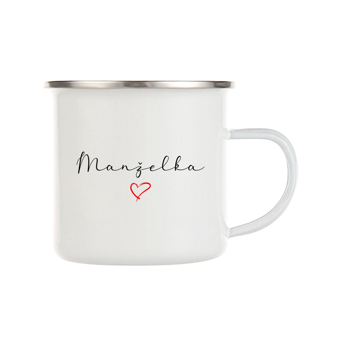 Tradiční bílý smaltovaný hrnek s motivem pro manželku.