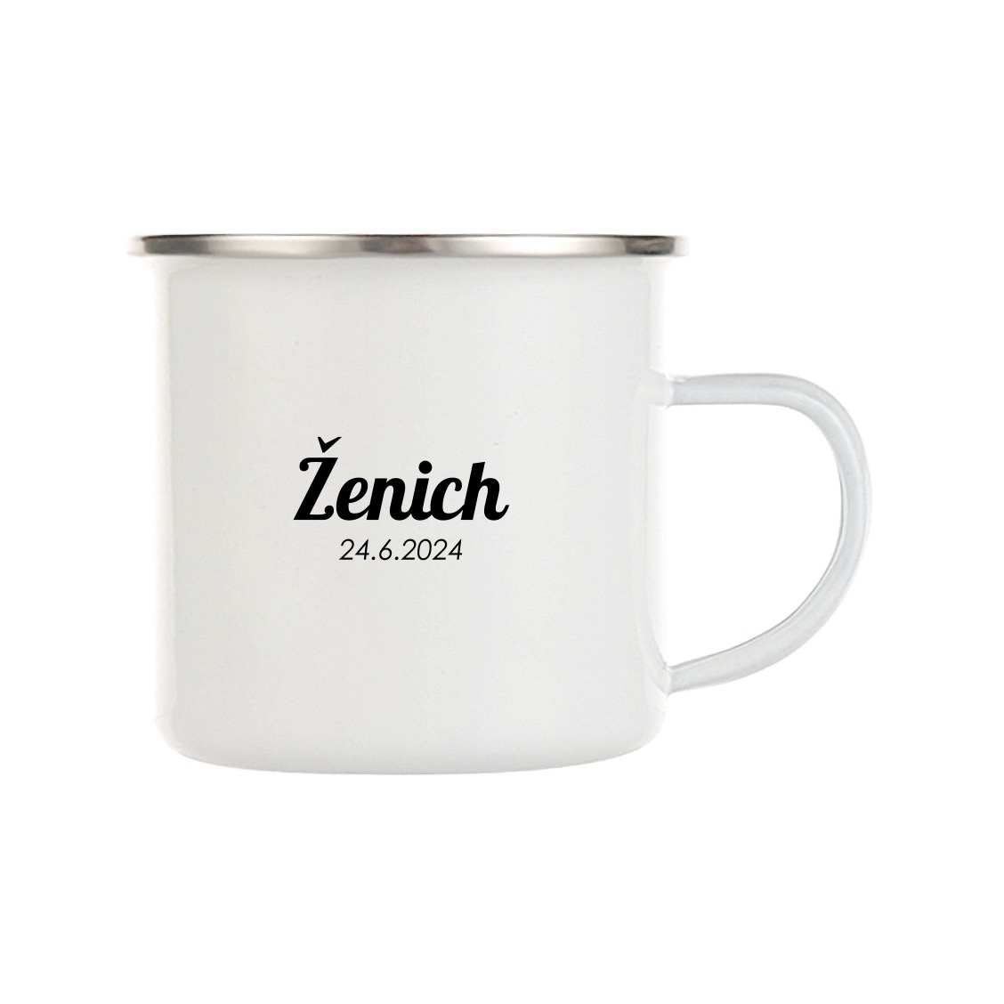 Varianta plecháčku s černým nebo se stříbrným lemem. Hrnek je možné mýt i v myčce, ale životnost potisku prodloužíte, budete-li plecháček mýt ručně.
