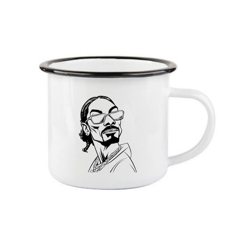 Tradiční bílý smaltovaný plecháček s motivem Snoop Dogga. K motivu lze volitelně přidat vlastní text. Ten můžete připsat do poznámky k objednávce.