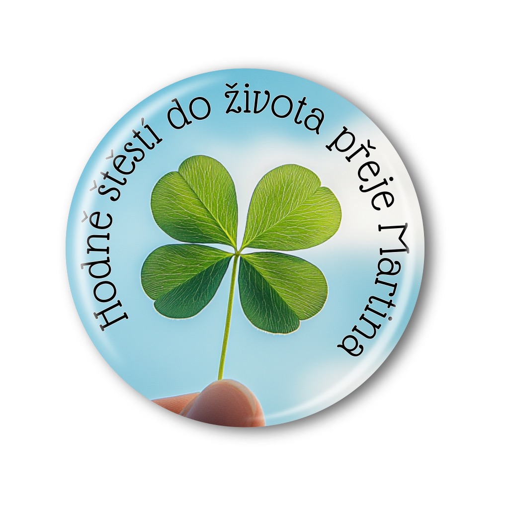 Tato připínací placka je dokonalým dárkem na rozloučenou od učitele nebo učitelky pro jejich žáky. Placka s motivem čtyřlístku představuje nejen symbol štěstí, ale také krásnou vzpomínku na společně strávené chvíle ve škole. Nápis „Hodně štěstí do života přeje (jméno učitele)“ dodává placce osobní a srdečný význam.