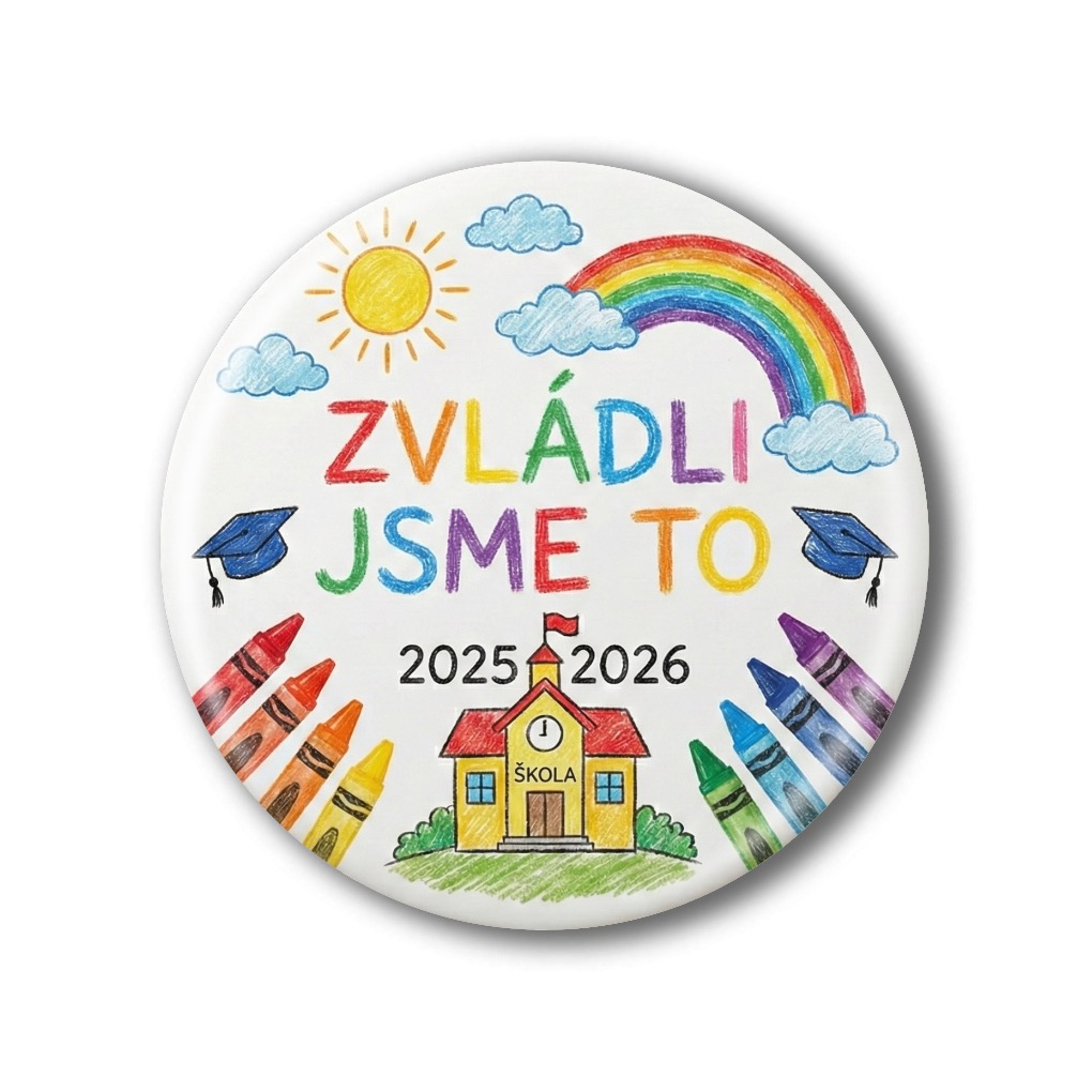 Tato placka (button) není jen obyčejný doplněk, ale malý symbol velkého úspěchu. Na přední straně najdete hravý a barevný motiv, který okamžitě vykouzlí úsměv na tváři každého školáka. Grafika je chráněna kvalitní transparentní fólií, která zajišťuje vysoký lesk a chrání obrázek před poškrábáním či vyblednutím barev.