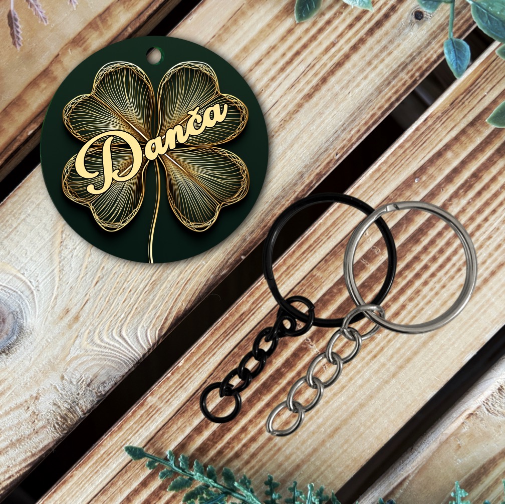Jedinečný přívěsek s elegantním motivem čtyřlístku, vytvořeným z jemných zlatých linií, a možností personalizace vlastním jménem. Tento stylový doplněk přináší symbol štěstí a je skvělým dárkem pro každého, kdo ocení originalitu a eleganci.