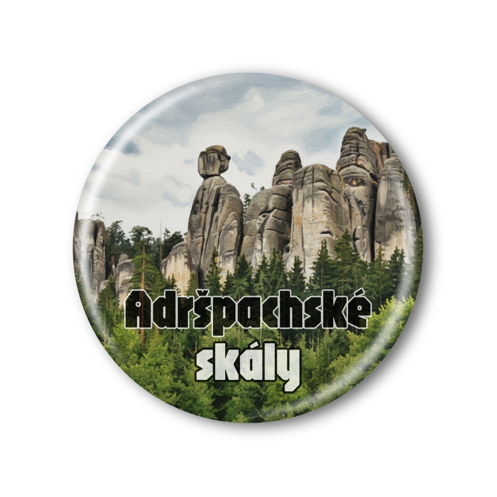 Uchovejte si vzpomínku na návštěvu jedinečných Adršpašsko-teplických skal stylovou připínací plackou nebo magnetkou. Originální motiv zachycuje atmosféru majestátních pískovcových věží, skalních měst a dechberoucí krajiny, která fascinuje turisty z celého světa.