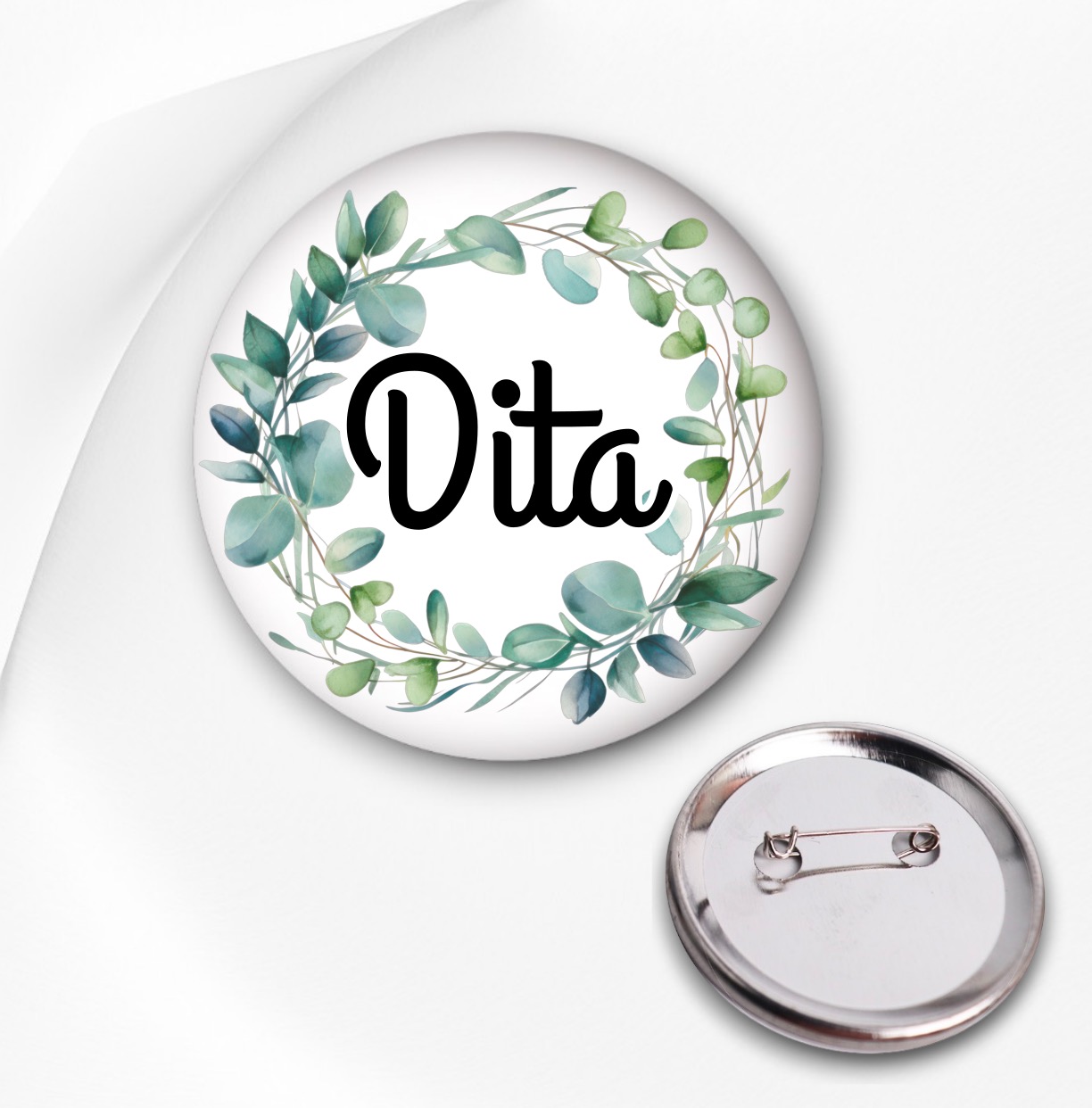 Placka o velikosti 44 mm nebo 58 mm na spínací špendlík. Přední strana je potažena lesklou průhlednou fólií, zadní strana v celokovovém provedení se zavíracím špendlíkem.