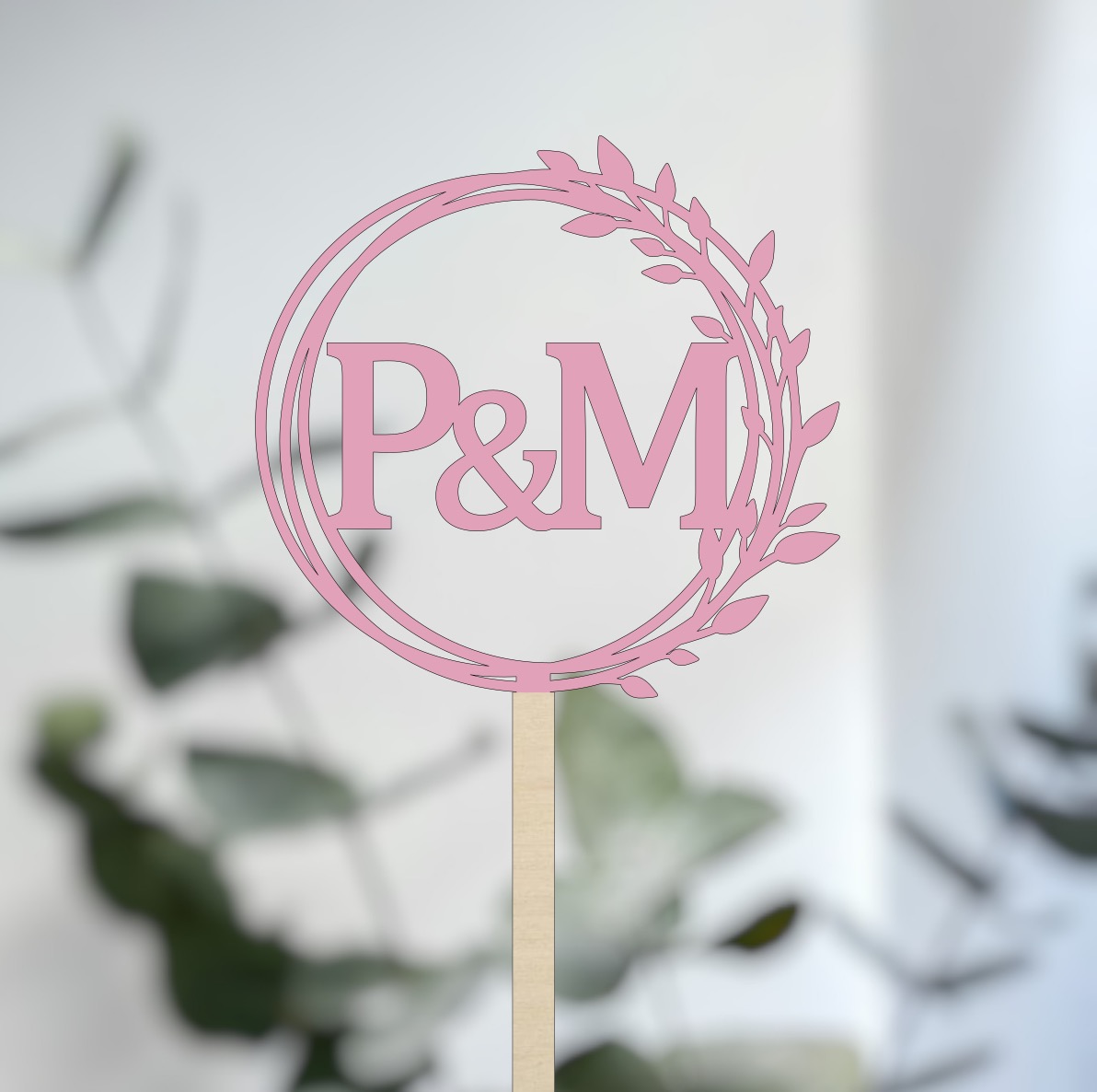Ozdobný dřevěný zápich do dortu s iniciály novomanželů, díky kterému i z obyčejného dortu vytvoříte dort jedinečný, který bude každý obdivovat.