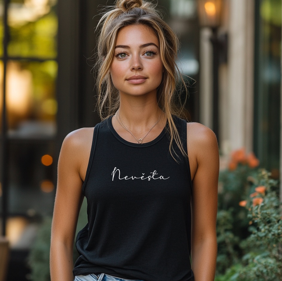 Stylové dámské tričko s nápisem "Nevěsta" je ideální volbou pro každou budoucí nevěstu na její rozlučku se svobodou. Černý základ s elegantním bílým nápisem dodává tričku moderní a vkusný vzhled. Vyrobeno z kvalitního a příjemného materiálu, který zajišťuje pohodlí po celý den i večer. Perfektně se hodí k džínům, sukni nebo šortkám a skvěle doplní atmosféru vaší rozlučky. Buďte středem pozornosti a užijte si svůj speciální den ve velkém stylu!