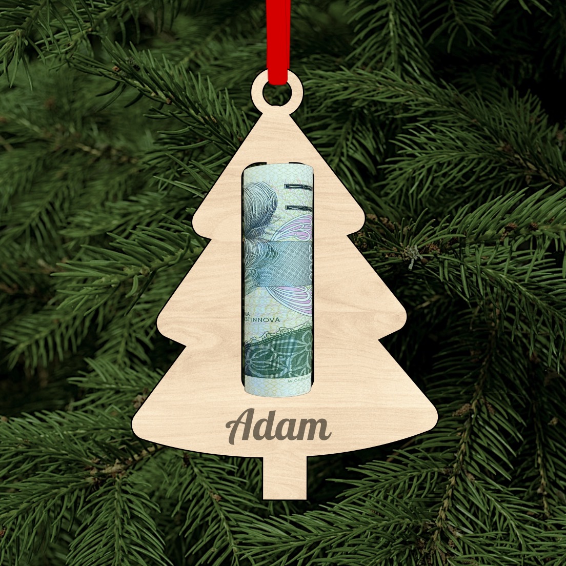 - Vánoční ozdoba na peníze se jménem