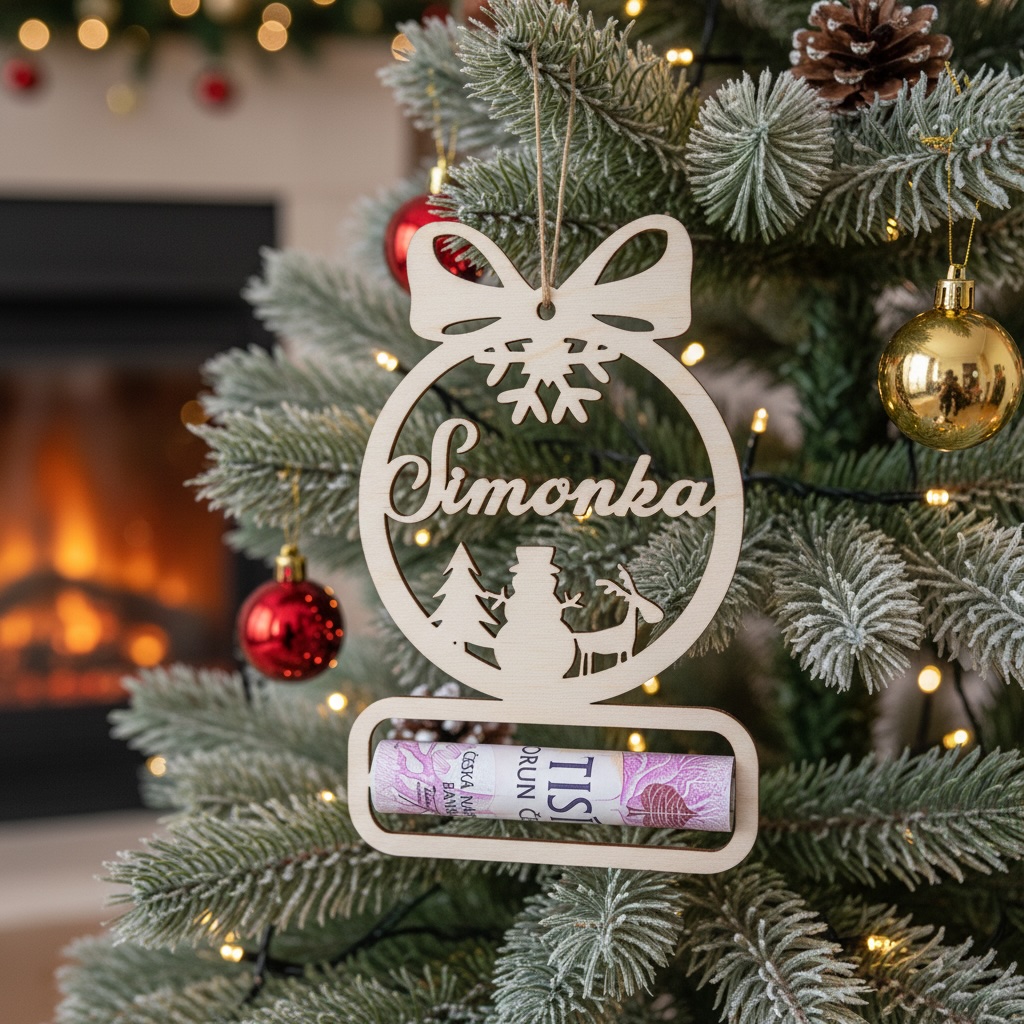 - Vánoční ozdoba na peníze se jménem