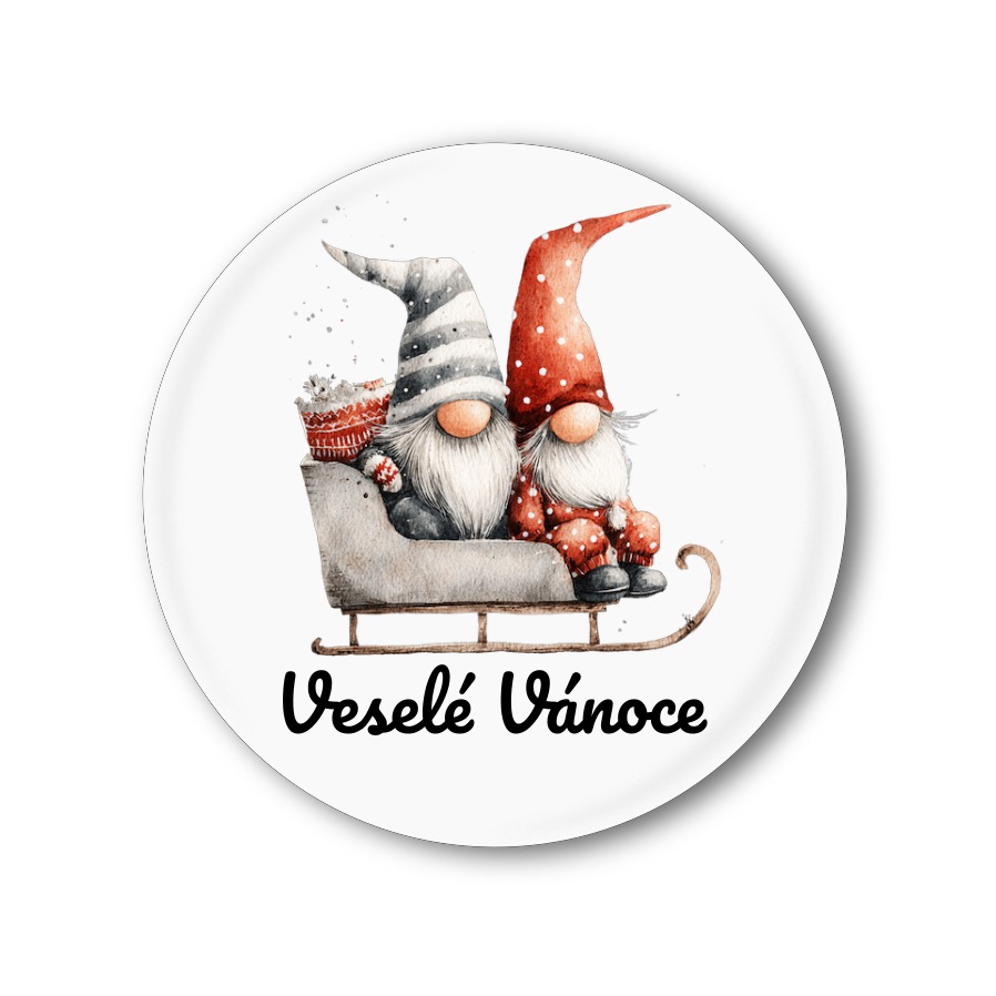 Hledáte způsob, jak dodat Vánocům trochu hravosti, aniž byste museli nosit svítící svetr? Naše vánoční placka (button) s ilustrací je tou správnou volbou. Motiv zachycuje roztomilé vánoční skřítky v zimních kulisách – ať už na sáňkách s vánočním stromečkem, nebo při stavění sněhuláka.