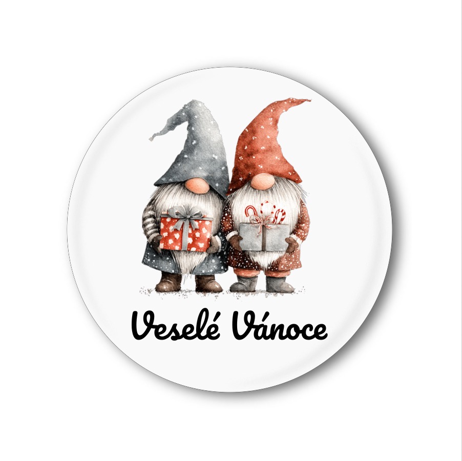 Jemná kresba připomínající akvarel v kombinaci s tradičními barvami působí něžně a vkusně. Placka je doplněna krasopisným českým textem „Veselé Vánoce“ nebo „Šťastné a veselé“. Díky klasickému kulatému tvaru a bezpečnému zapínání na zadní straně ji snadno připnete kamkoliv. Je to ideální maličkost, která se vejde do každé dlaně, ale udělá velkou radost.