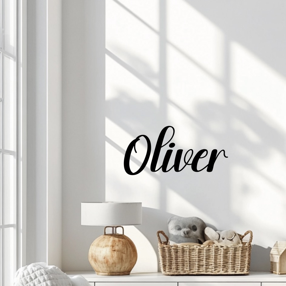 Vinylová samolepka se jménem dle vašeho přání ve vyobrazeném stylu písma je dekorace na míru, která umožňuje dodat vašemu interiéru osobní dotek. Vyberte si velikost a barvu podle svého přání a my vaše jméno vyrobíme přesně podle vašich představ. Samolepka je vhodná k aplikaci na různé povrchy, například na zdi, dveře, nábytek nebo jiná hladká místa.