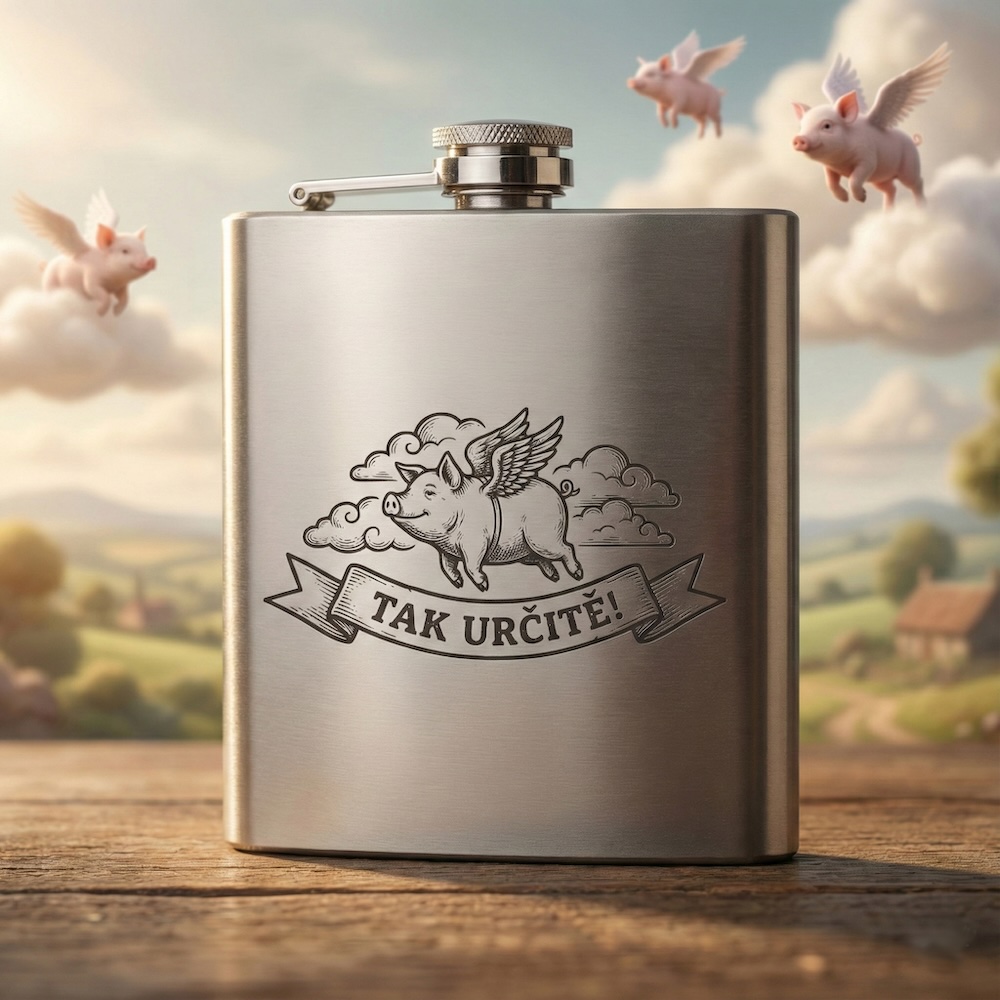 Placatka je vyrobena z vysoce kvalitní nerezové oceli, která zaručuje dlouhou životnost a odolnost proti korozi. Vtipný motiv s létajícím prasátkem a nápisem „Tak určitě!“ dodává výrobku osobitý nádech a skvěle se hodí k jakékoliv příležitosti.