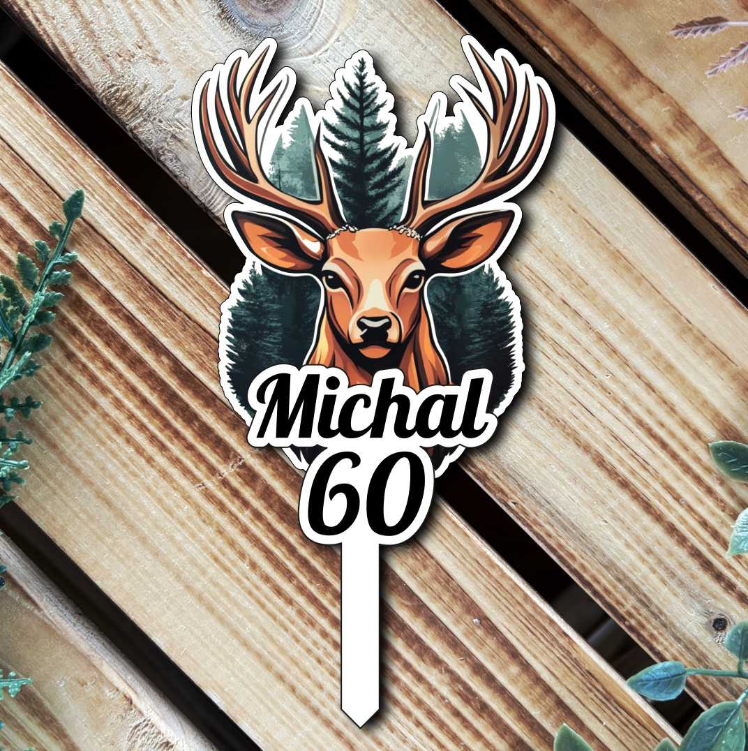 Stylový a originální zápich do dortu, který upoutá pozornost každého! Jedinečný design s motivem majestátního jelena obklopeného lesním prostředím, doplněný jménem a rokem dle vašeho přání. Ideální na oslavy narozenin, výročí nebo jiné významné události.